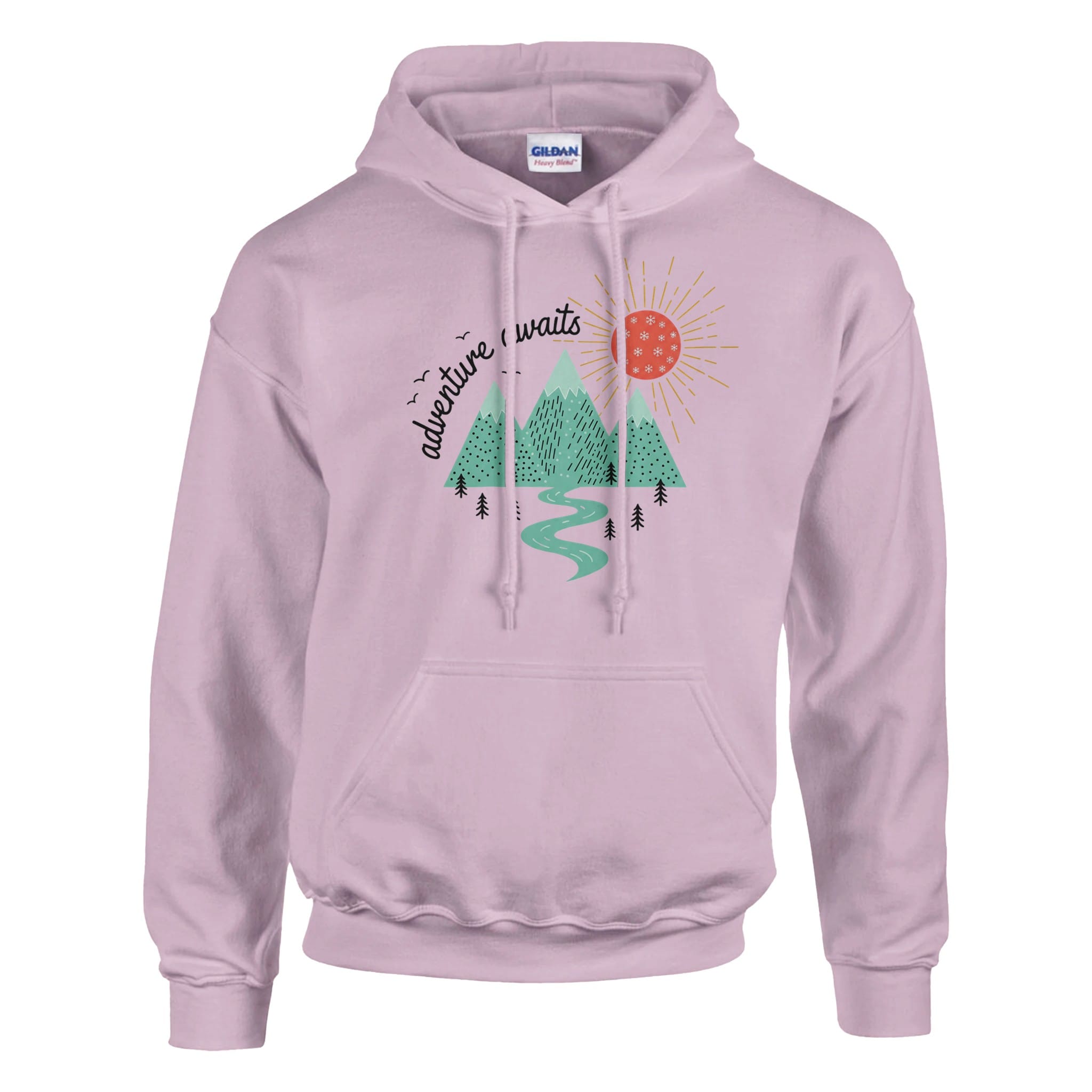 Our Adventure Awaits Hoodie is a heavy blend pullover hoodie, crafted from a soft blend of 50% cotton and 50% polyester.