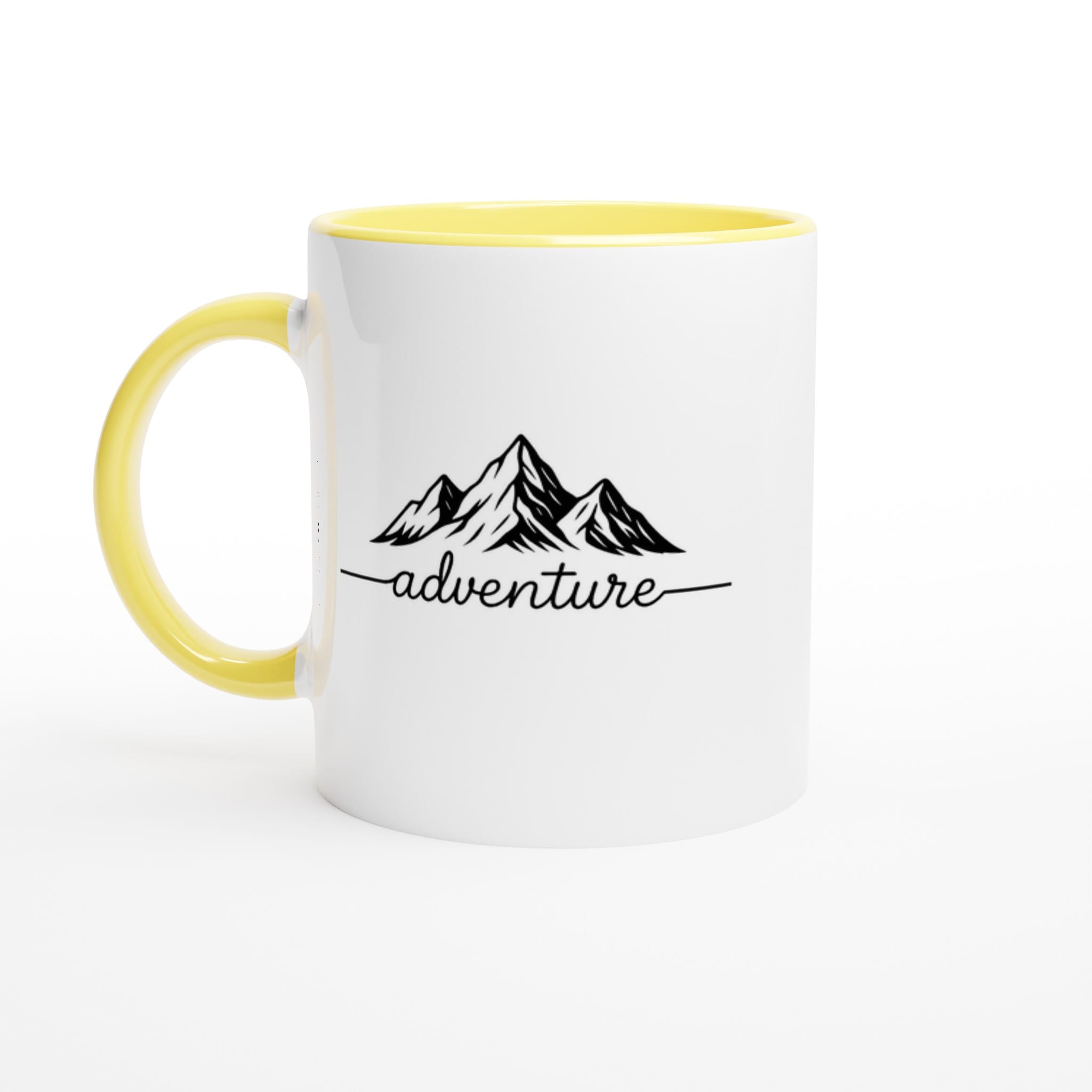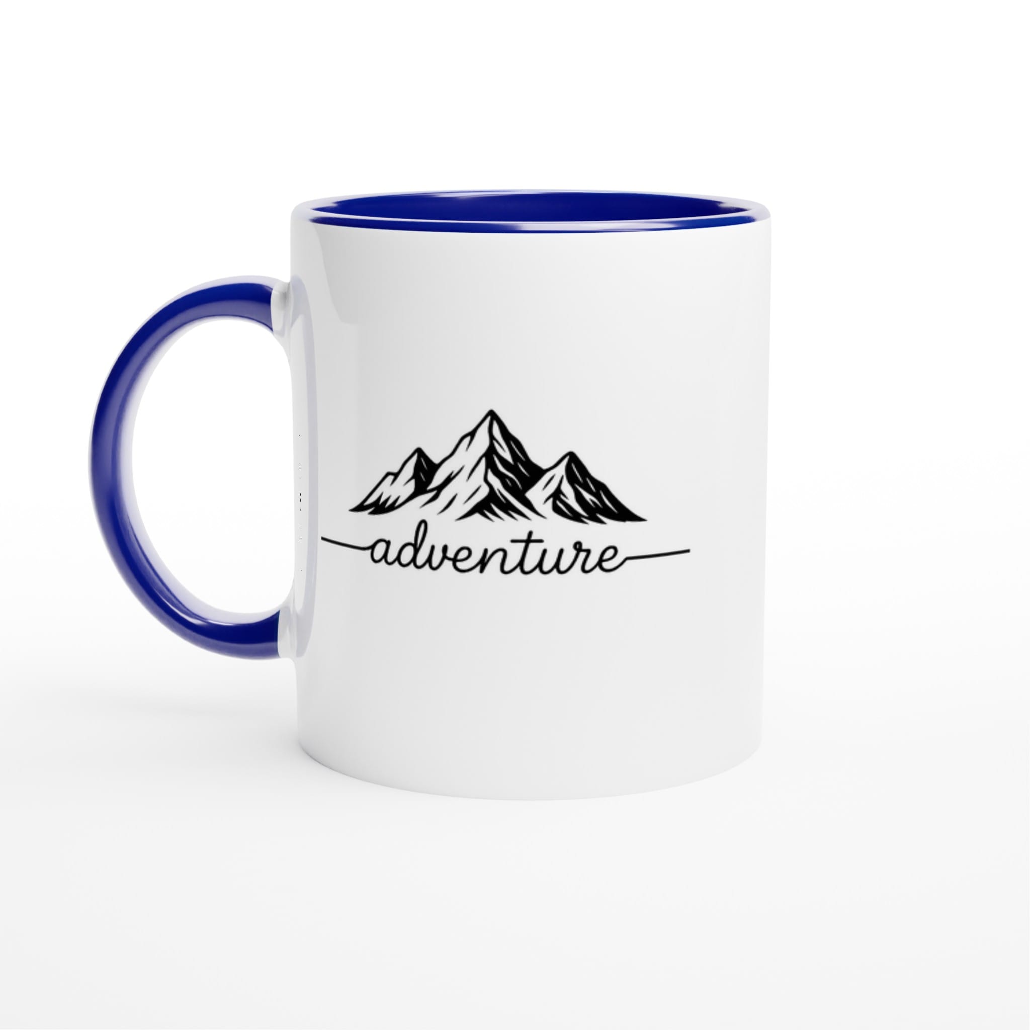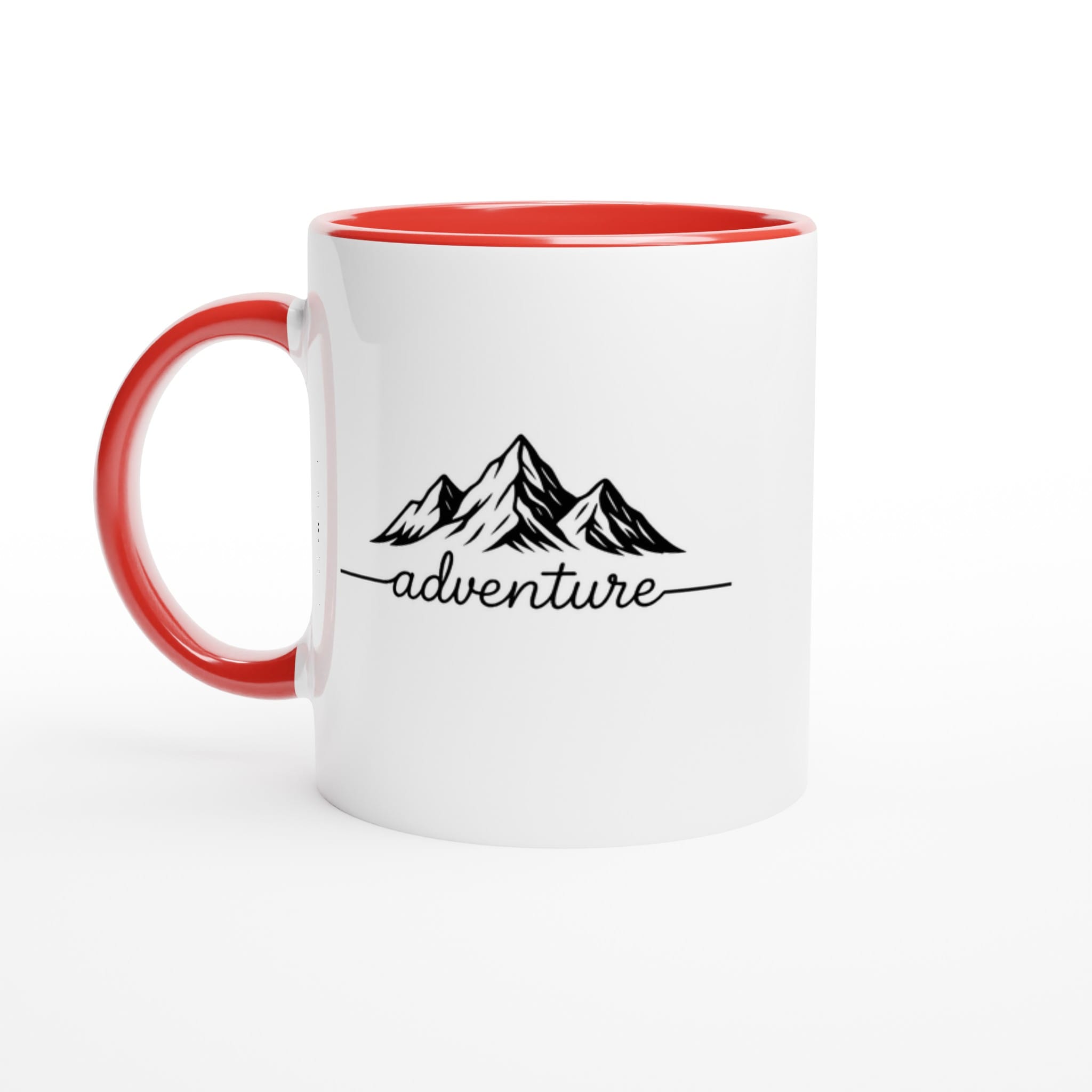 This Mountains Coffee Mug – Adventure is perfect for your morning coffee or tea, a hot chocolate, or any beverage. It’s crafted in glossy white with a colored rim, inside, and handle as well.