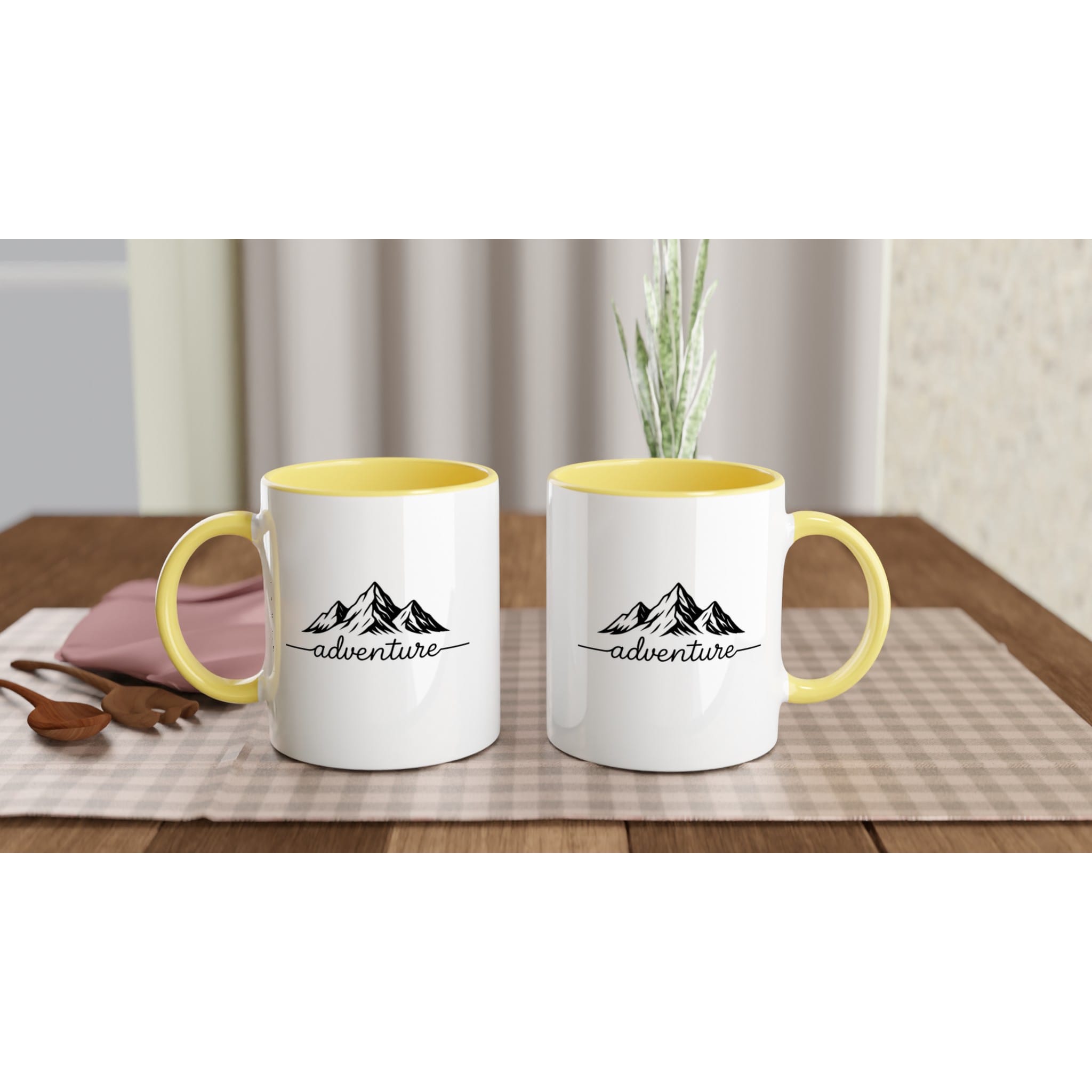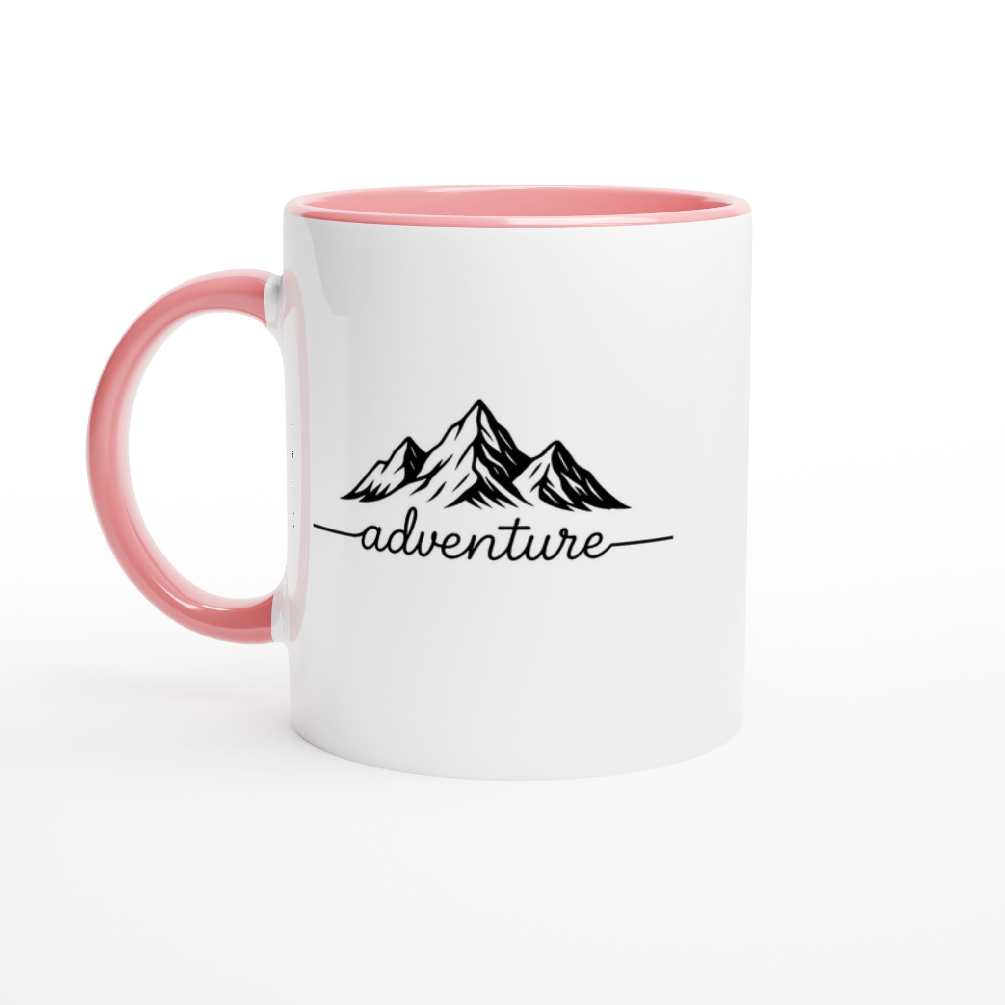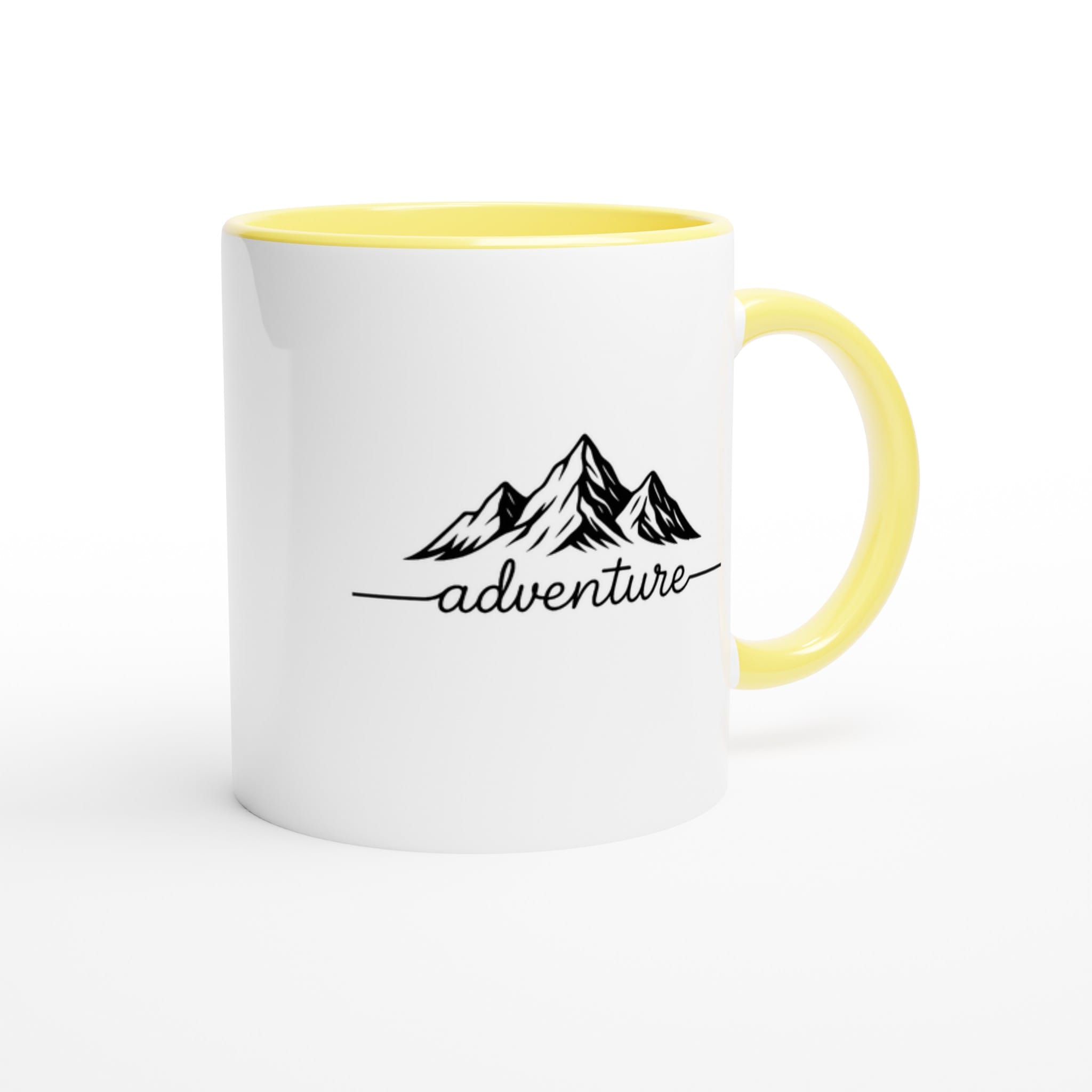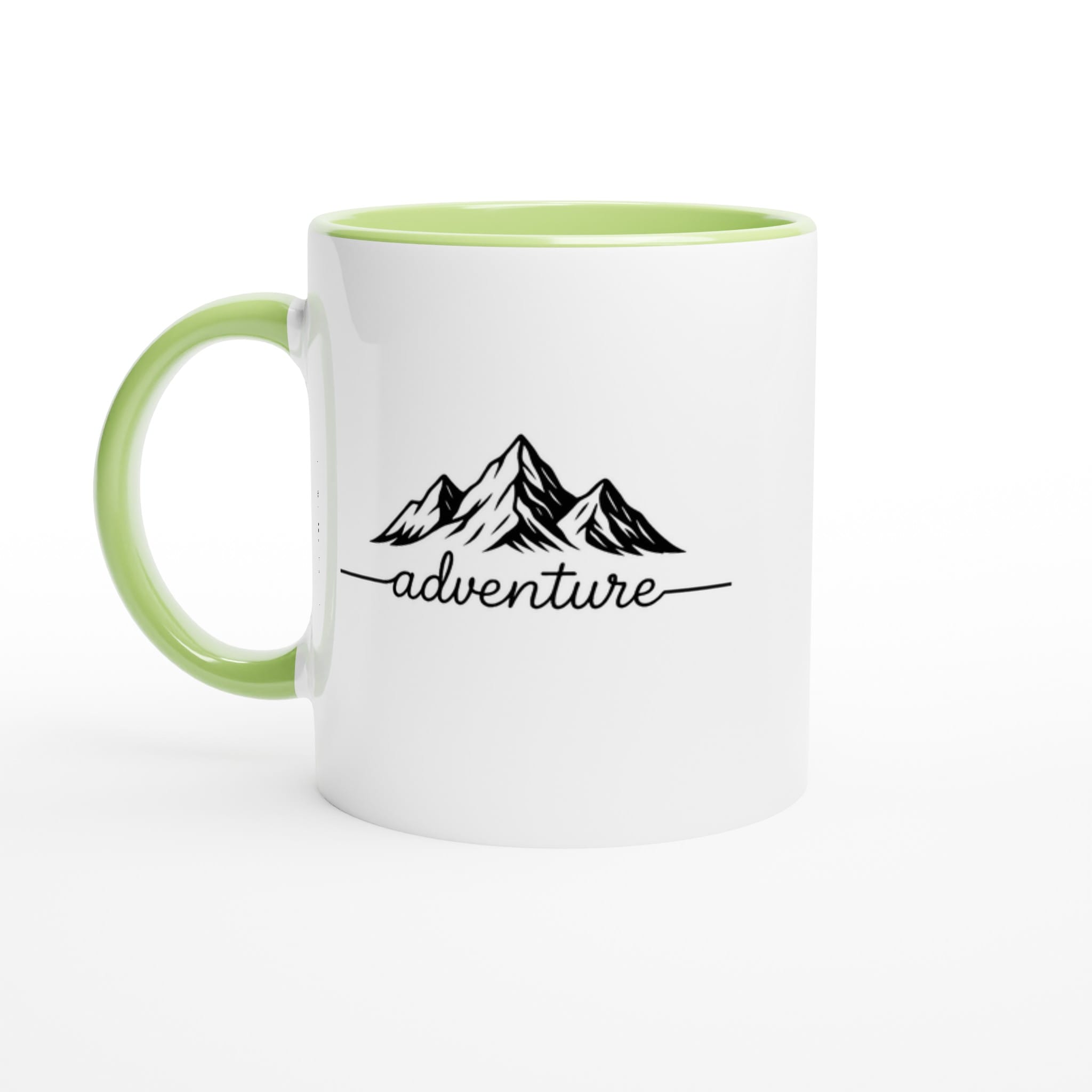 This Mountains Coffee Mug – Adventure is perfect for your morning coffee or tea, a hot chocolate, or any beverage. It’s crafted in glossy white with a colored rim, inside, and handle as well.