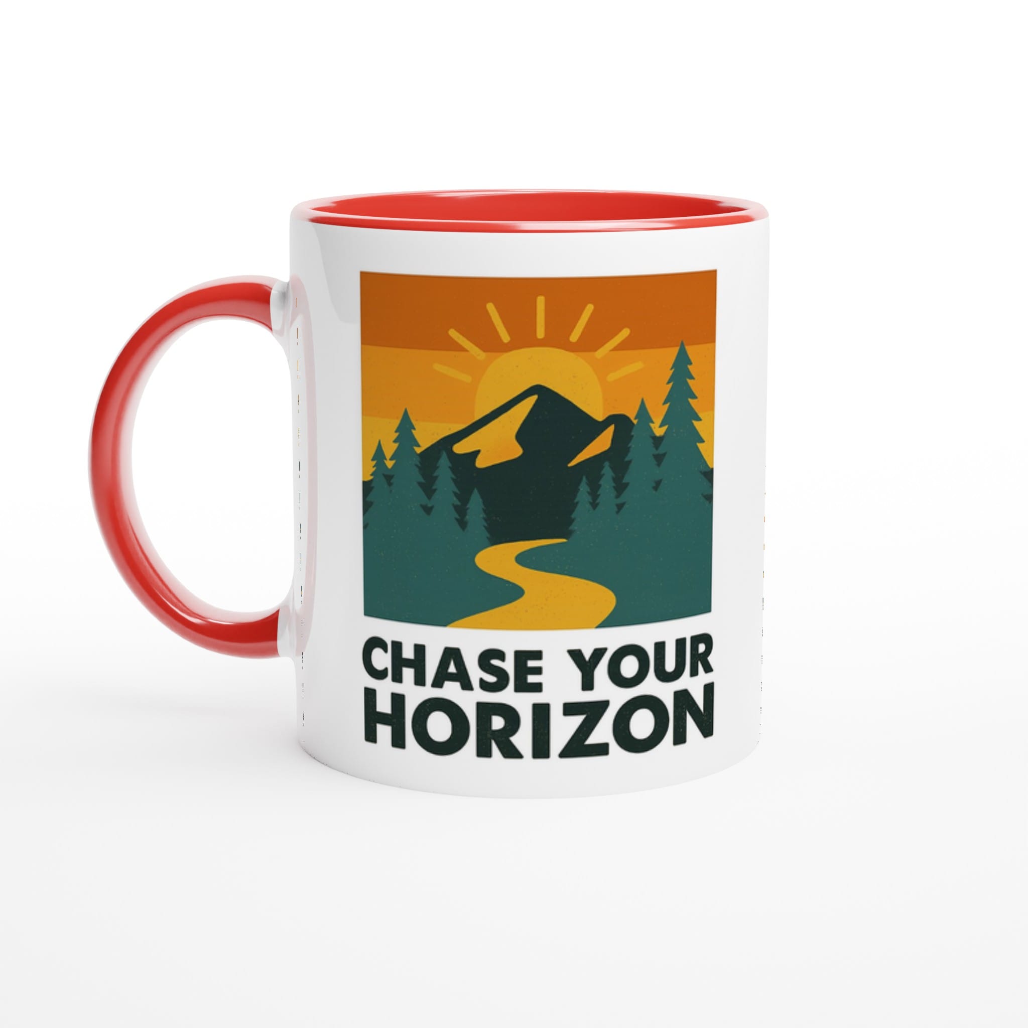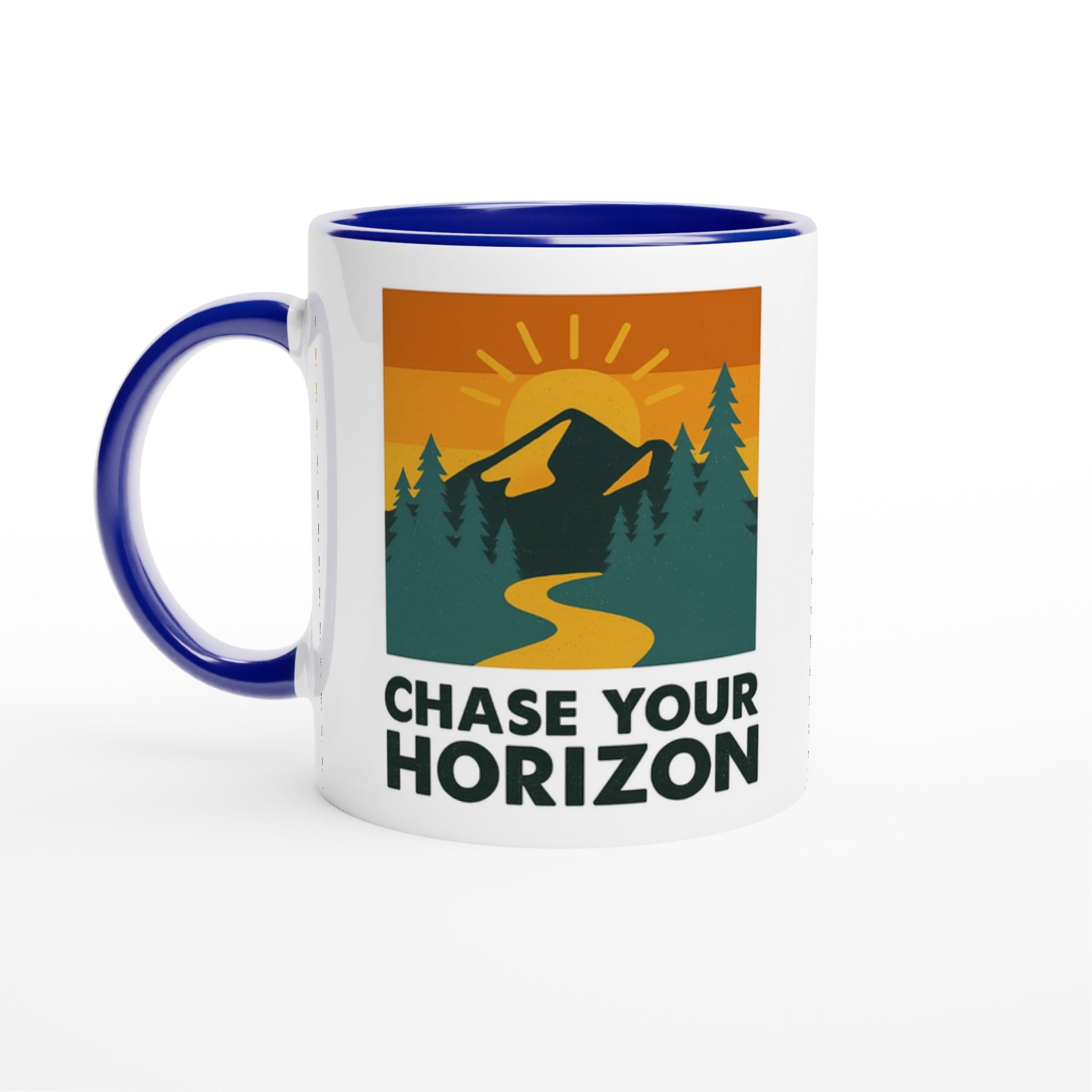 Our gorgeous Chase Your Horizon Mug features our logo-inspired artwork with Chase Your Horizon underneath it.