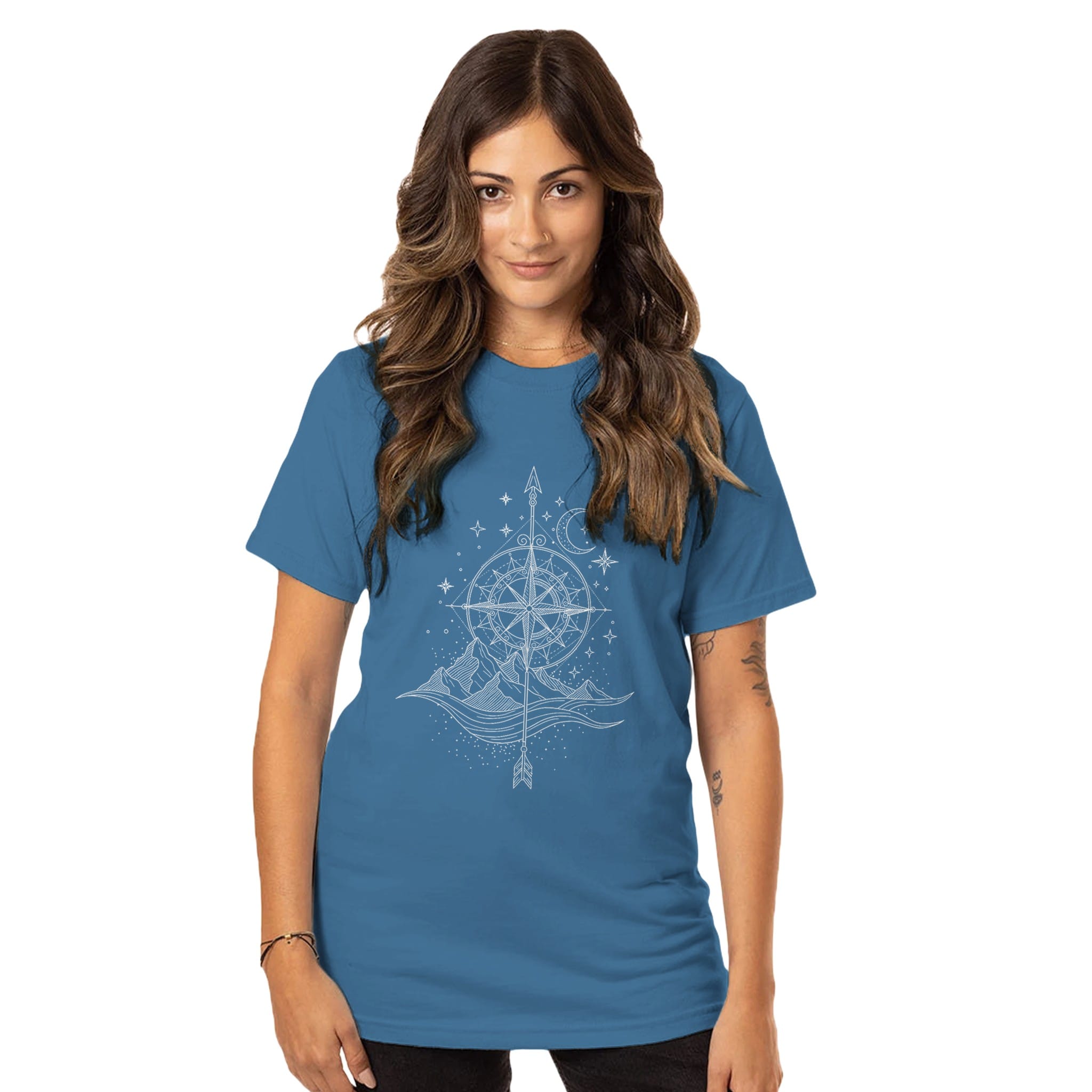 With a compass nod to the night sky and mountains on the horizon, you’re quietly making a statement with this shirt — “I follow my own compass, and I wouldn’t have it any other way!”