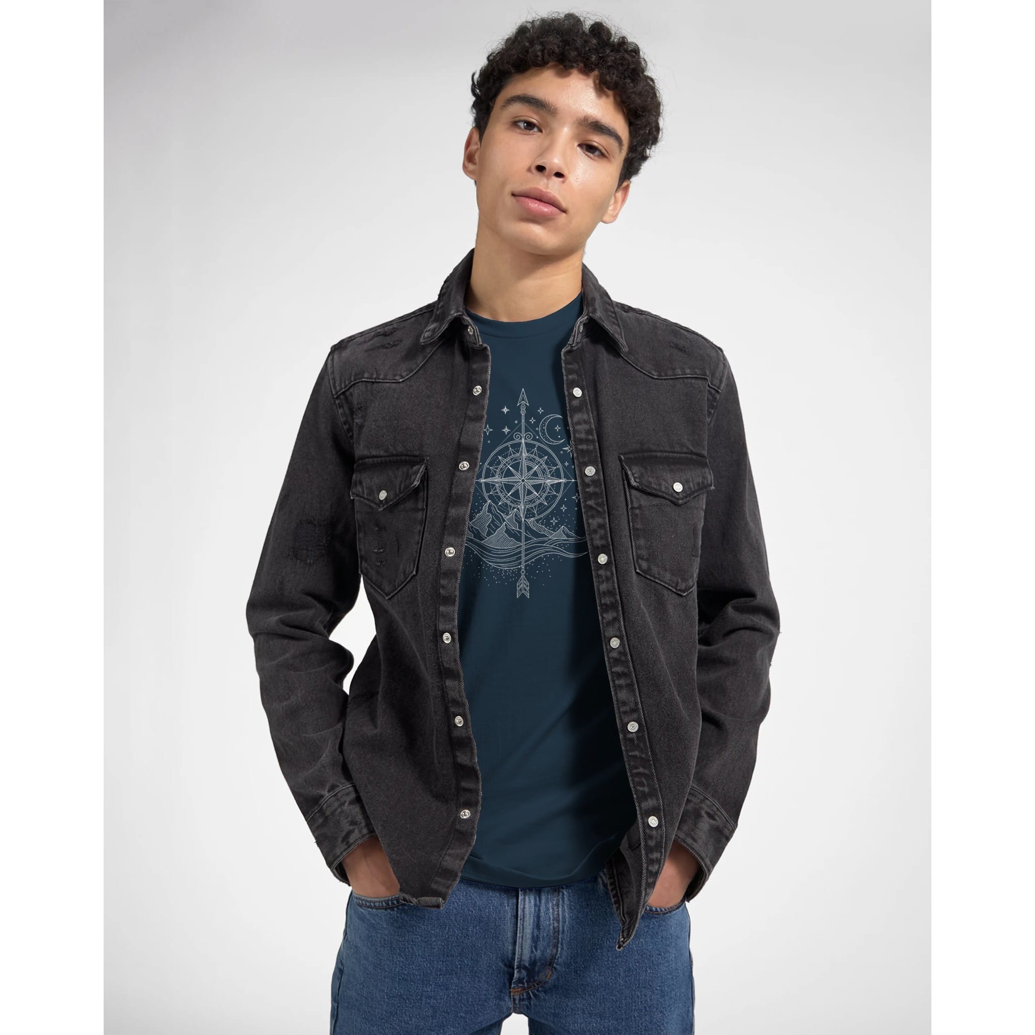 With a compass nod to the night sky and mountains on the horizon, you’re quietly making a statement with this shirt — “I follow my own compass, and wouldn’t have it any other way.”