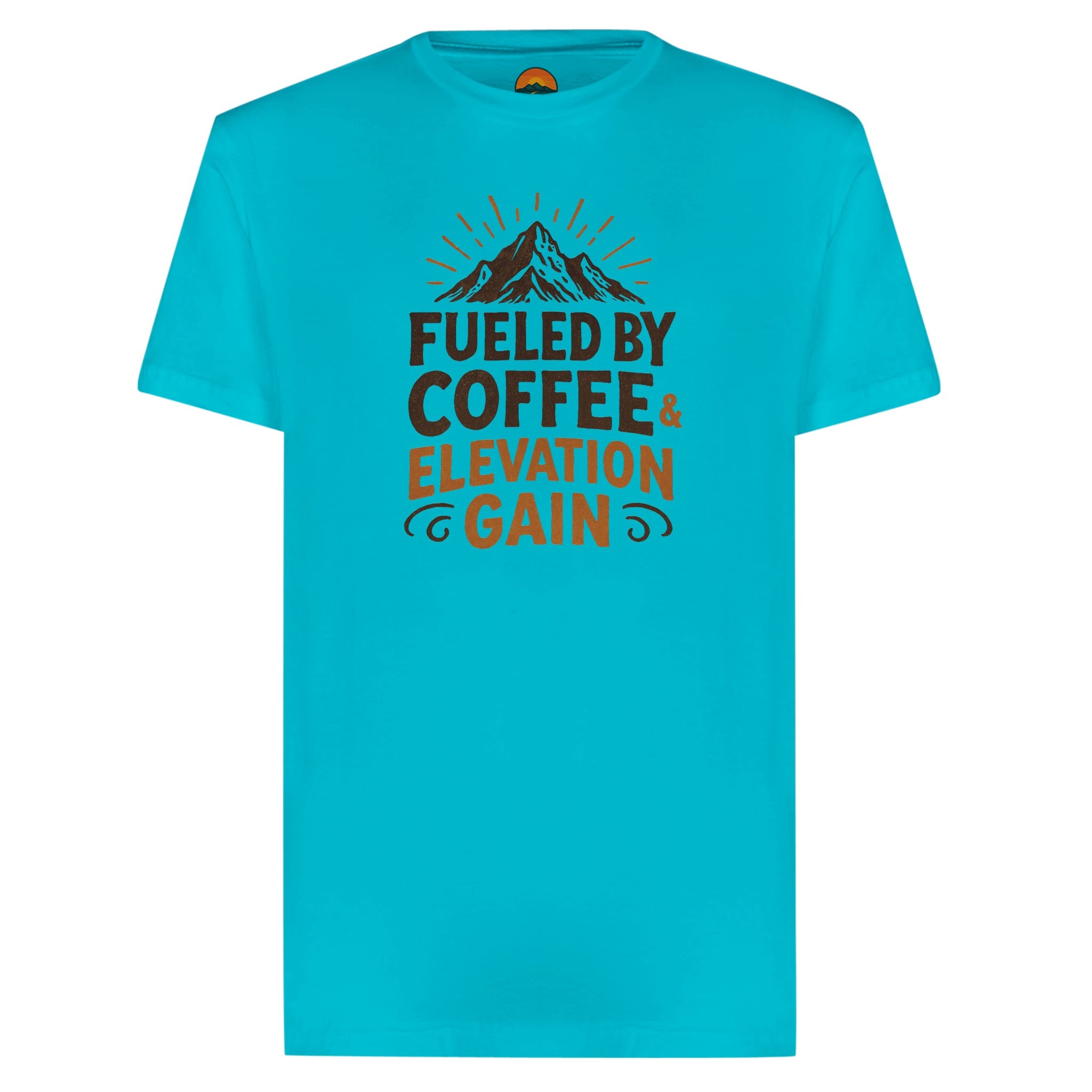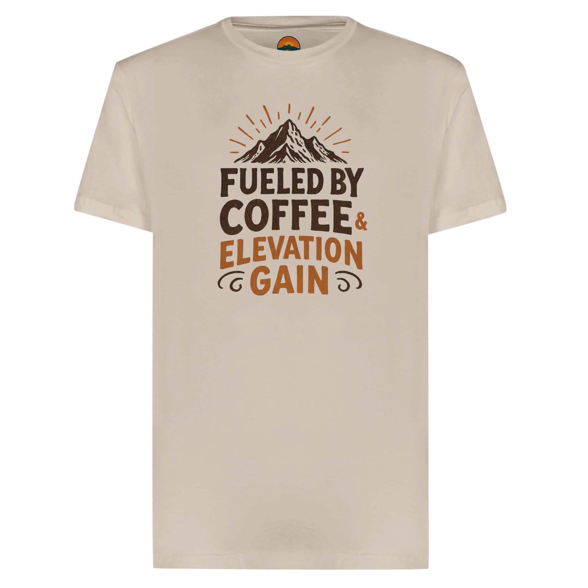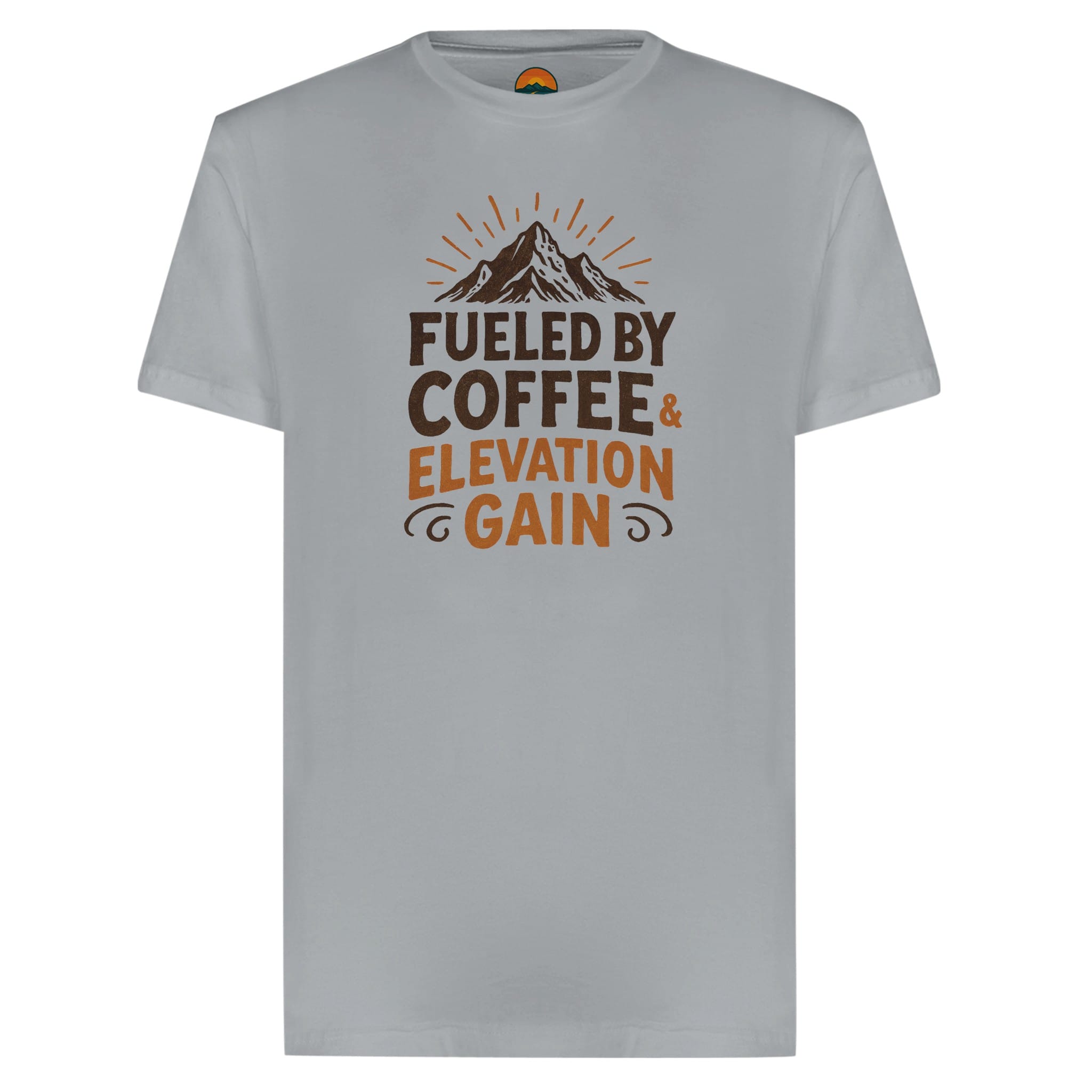 Our Fueled by Coffee & Elevation Gain T-Shirt speaks the fundamental truth all caffeine-loving hikers know all too well.